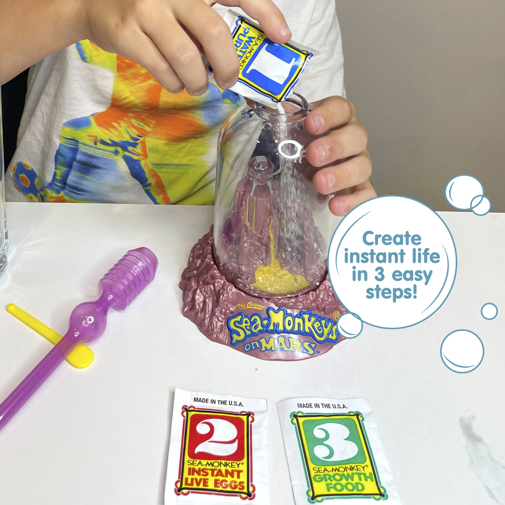 Includes Water Purifier, Instant Live Eggs, Sea-Monkeys Food, Feeding Spoon, Air Pump, And Instructions